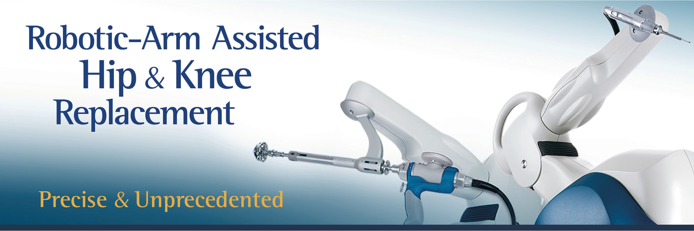 Your surgeon will determine whether you are a candidate for a total knee or total hip replacement using Robotic-Arm Assisted Surgery technology. This groundbreaking technology allows our surgeons to achieve greater accuracy in the alignment and positioning of the joint implant, which offers increased success in providing flexibility of the joint and enabling a faster return to the everyday activities you enjoy.
